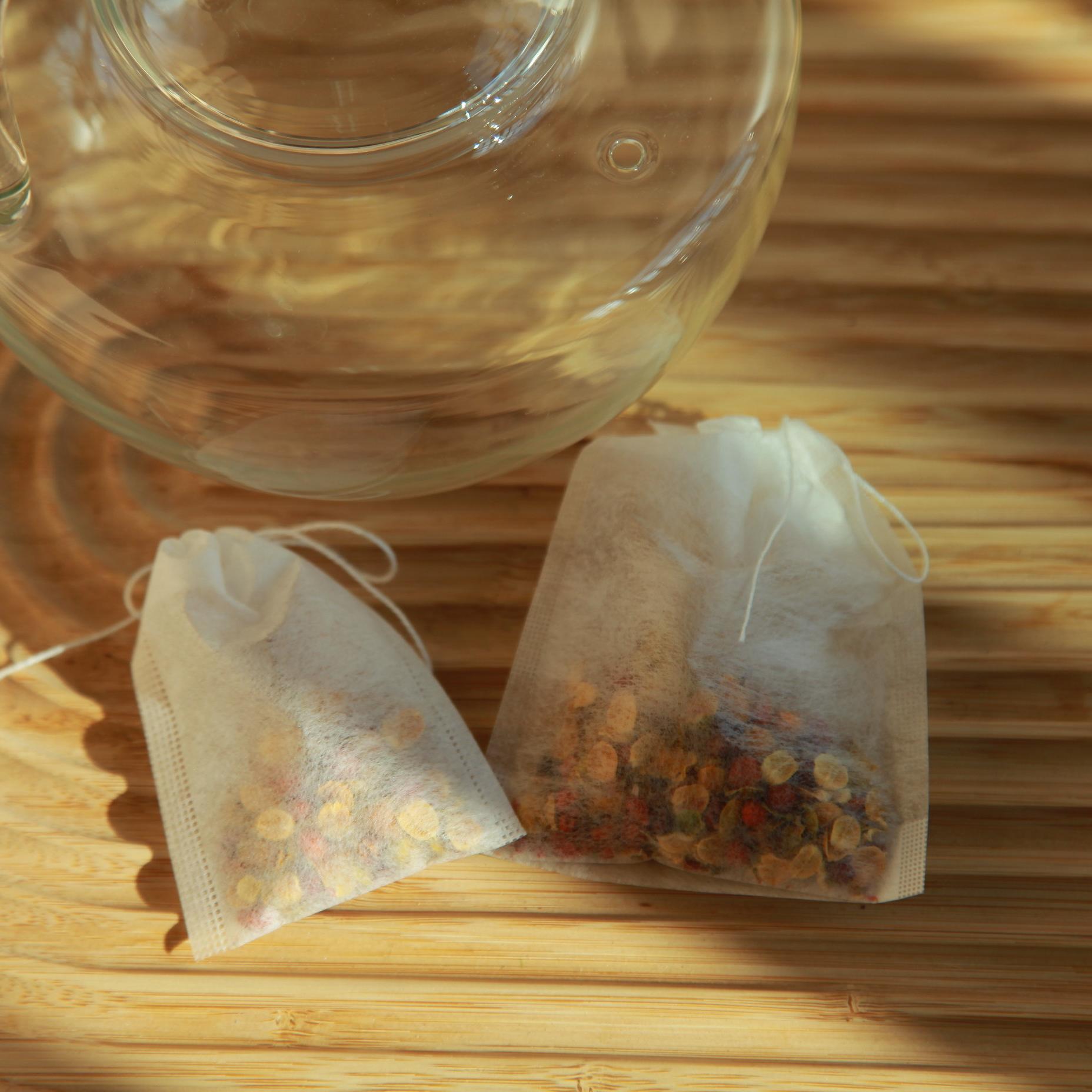 Не тканые ткани и нейлон изготовлены из пластика, а производители предпочитают эти два типа чайных пакетов из -за их практических преимуществ, таких как низкая стоимость, теплостойкость и сопротивление деформации в горячей воде. Особенно для нейлоновых чайных пакетов, которые HA